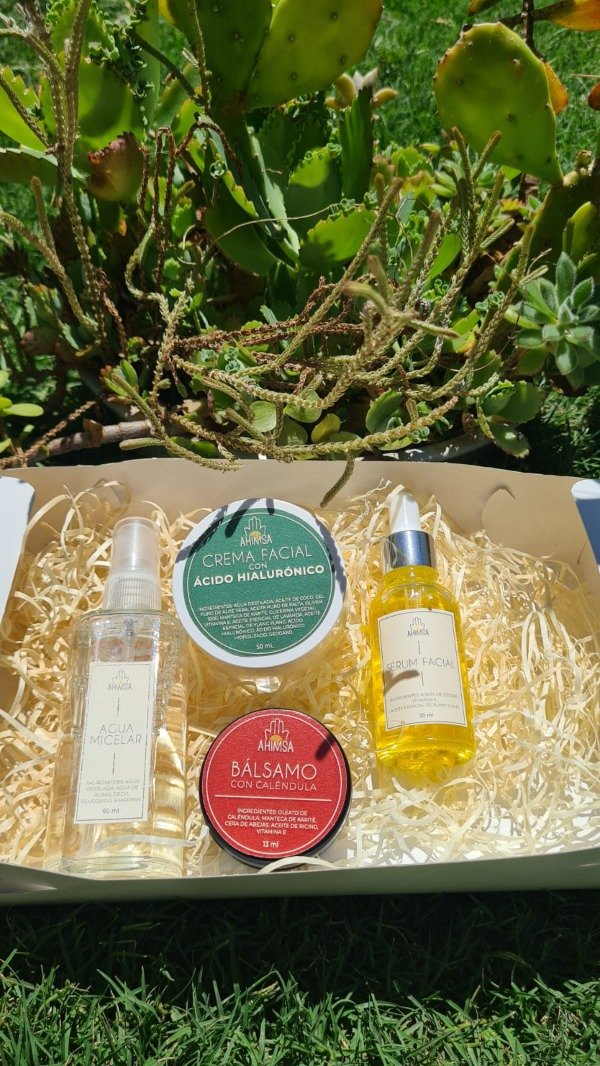 Agua micelar + crema facial con ácido hialurónico + serum facial + bálsamo labial